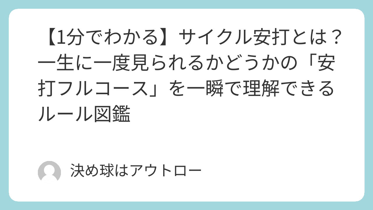 【1分でわかる】サイクル安打とは?一生に一度見られるかどうかの「安打フルコース」を一瞬で理解できるルール図鑑