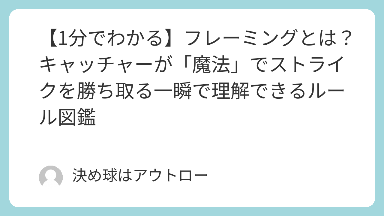 一言でいうと、フレーミングとは「キャッチャーが捕球の仕方を工夫して、際どいボール球をストライクに見せる技術」のこと。