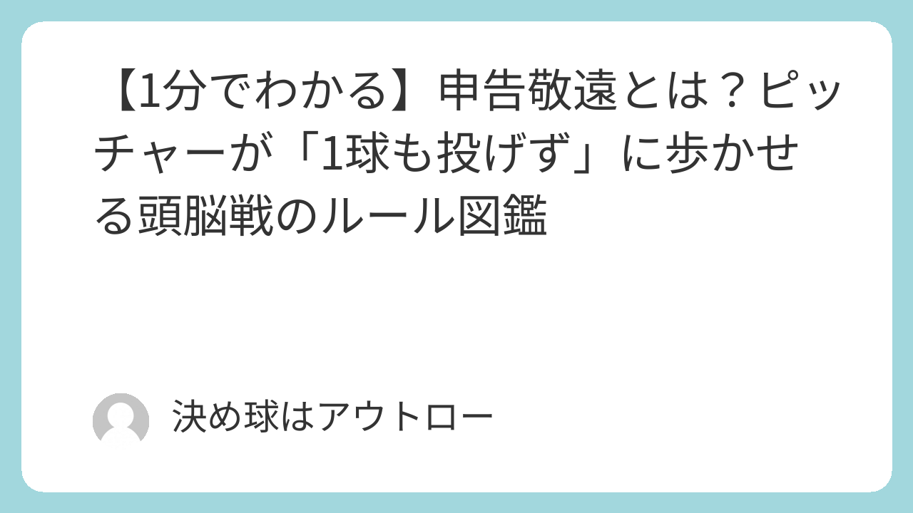 申告敬遠(Intentional Walk)は、バッターと勝負したくないとき、監督がベンチから「敬遠します」と合図するだけで成立します。ピッチャーは1球も投げる必要がなく、すぐにランナーが1塁へ進みます。