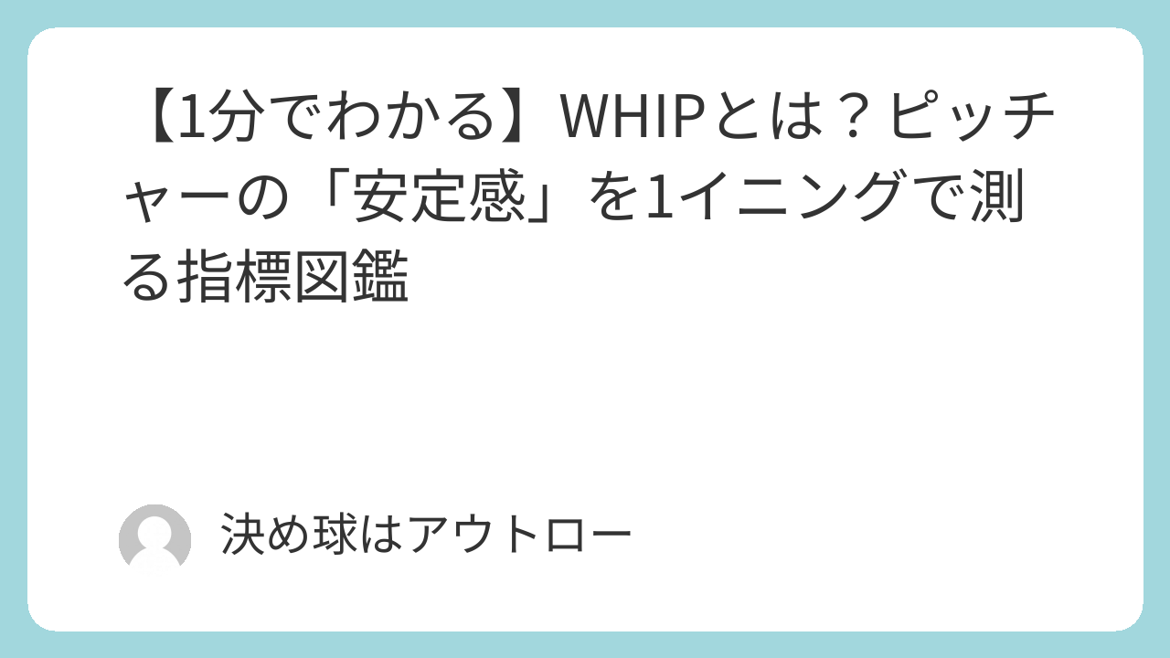 次に甲子園で先発ピッチャーの成績が表示されたら、WHIPをチェックしてみてください。「お、今日の先発はWHIPが低いな。安心してビールが飲めるぞ!」と、余裕を持って観戦できますよ。